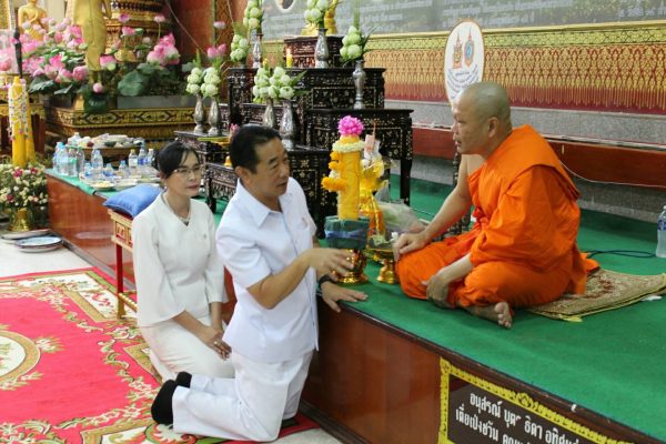 นายนิมิต วันไชยธนวงศ์ ผู้ว่าราชการจังหวัดสุพรรณบุรี พร้อมด้วยนางจุฬารัตน์ วันไชยธนวงศ์ นายกเหล่ากาชาดจังหวัดสุพรรณบุรี เป็นประธานฝ่ายฆราวาส ตามโครงการ “ผู้ว่าฯพาทำบุญ
