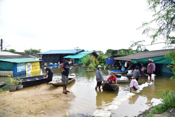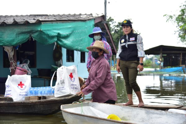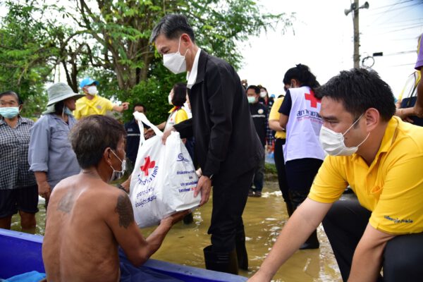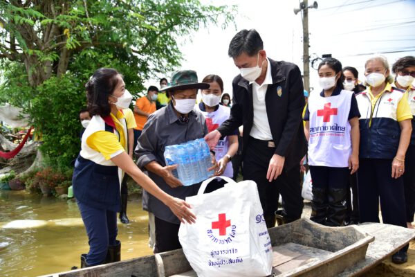 ทั้งนี้สภากาชาดไทย ได้จัดส่งสิ่งของบรรเทาทุกข์ จำนวน 2 จุด พร้อมกำลังพลร่วมกันบรรจุถุงยังชีพ โดยจุดที่ 1 หอประชุมโรงเรียนภัทรญาณ อำเภอนครชัยศรี จำนวน1,500 ชุด เพื่อส่งมอบให้กับผู้ประสบอุทกภัยในพื้นที่อำเภอนครชัยศรี 889 ชุด อำเภอสามพราน 561 ชุด อำเภอพุทธมณฑล 50 ชุด และจุดที่ 2 วัดศิลามูล อำเภอบางเลนจำนวน 1,000 ชุด เพื่อบรรเทาความเดือดร้อนของประชาชนที่ได้รับผลกระทบจากปริมาณน้ำในแม่น้ำท่าจีนเอ่อล้นตลิ่งเข้าท่วมบ้านเรือนของประชาชนที่อาศัยอยู่ริมแม่น้ำ นอกแนวคันกั้นน้ำในเบื้องต้น