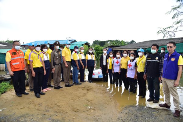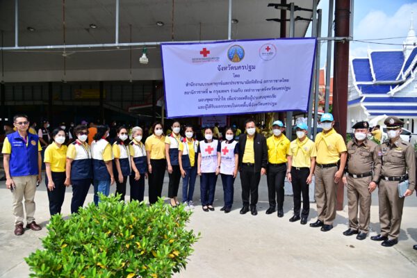 วันที่ 6 ตุลาคม พ.ศ. 2565 ที่ศาลาอเนกประสงค์ วัดศิลามูล อำเภอบางเลน จังหวัดนครปฐม นายสุรศักดิ์ เจริญศิริโชติ ผู้ว่าราชการจังหวัดนครปฐม พร้อมด้วย นางวราภรณ์ เจริญศิริโชติ นายกเหล่ากาชาดจังหวัดนครปฐม/ประธานแม่บ้านมหาดไทยจังหวัดนครปฐม รองผู้ว่าราชการจังหวัด ผู้แทนสำนักงานบรรเทาทุกข์และประชานามัยพิทักษ์สภากาชาดไทย สถานีกาชาดที่ 2 กรุงเทพมหานคร ปลัดจังหวัด หัวหน้าส่วนราชการสมาชิกเหล่ากาชาด เจ้าหน้าที่ทหาร ตำรวจ ตลอดจนผู้บริหารท้องถิ่น และประชาชนจิตอาสา ร่วมกันจัดเตรียมถุงยังชีพของสำนักงานบรรเทาทุกข์และประชานามัยพิทักษ์สภากาชาดไทย สถานีกาชาดที่ 2 กรุงเทพมหานคร พร้อมปล่อยแถวขบวนถุงยังชีพของสภากาชาดไทย เพื่อนำไปมอบให้กับผู้ประสบอุทกภัยในพื้นที่อำเภอบางเลนสามพราน พุทธมณฑล และอำเภอนครชัยศรี