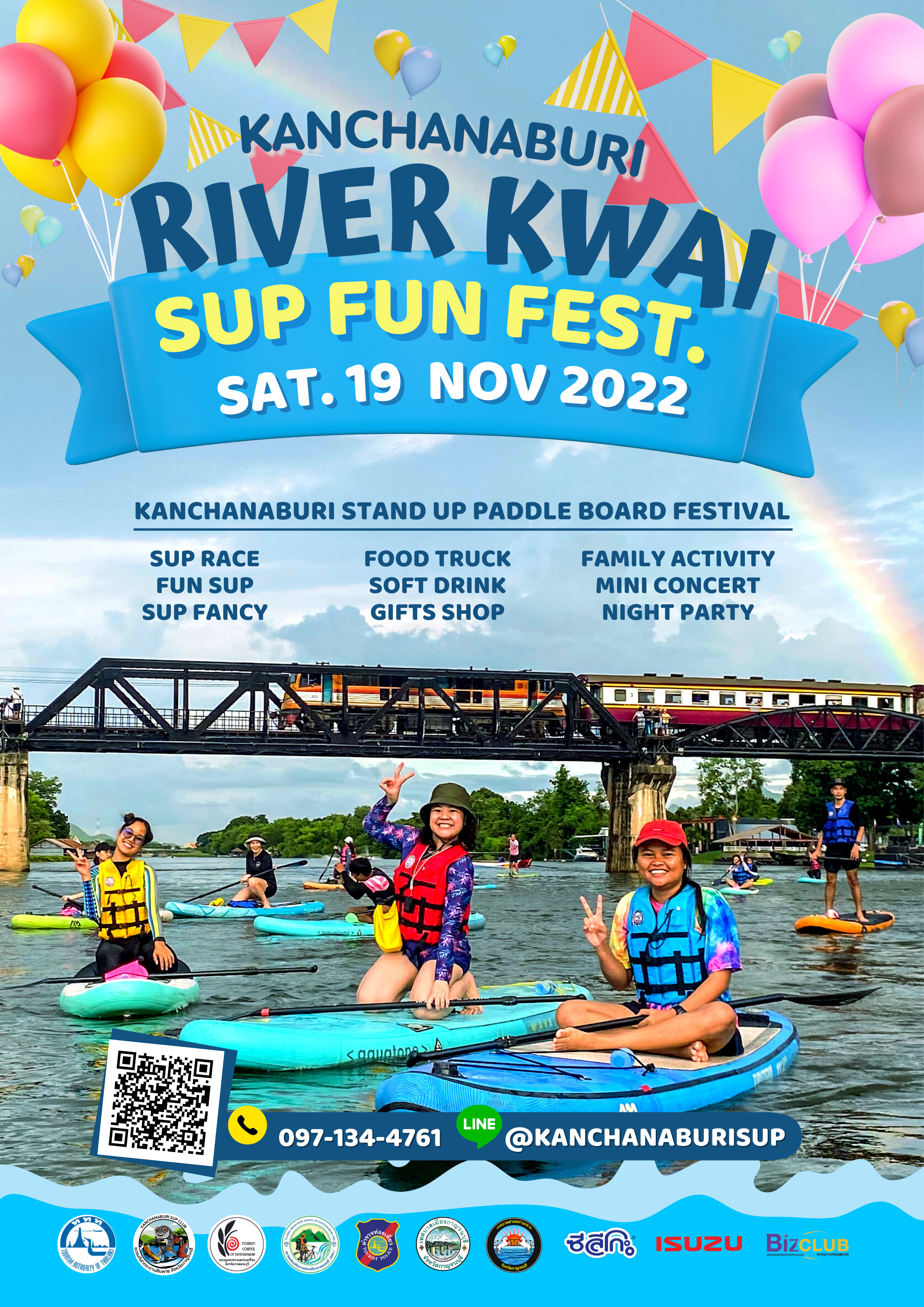 กิจกรรม River Kwai SUP Fun Fest จัดขึ้นครั้งแรกในลักษณะของมหกรรมกระดานยืนพายและเรือพายท่องเที่ยวที่เป็นมิตรกับสิ่งแวดล้อม เปิดโอกาสให้ผู้สนใจทุกกลุ่มเพศและวัยได้ร่วมประสบการณ์พายเพลิดเพลินในแม่น้ำแควใหญ่ พายร่วมกับสัตว์เลี้ยงแสนรัก หรือแข่งขันความเร็ว ระยะ 5 กิโลเมตร แบ่งประเภทชาย – หญิง ตามกลุ่มอายุ จุดเด่น คือ เป็นการพายซับบอร์ดกับเพื่อนร่วมทางจำนวนมาก และบันทึกภาพกับสะพานข้ามแม่น้ำแควซึ่งเป็นสถานที่ท่องเที่ยวสำคัญ และเป็นแลนด์มาร์กของจังหวัดกาญจนบุรี ที่จะหาโอกาสได้ไม่ง่ายนัก สำหรับกลุ่มผู้ชื่นชอบการพายคายัคหรือแคนู ก็สามารถเข้าร่วมสนุกกับกิจกรรมในครั้งนี้ได้เช่นกัน ก่อนการพายจริง มีการสอนวิธีการพายที่ถูกต้องให้กับนักพายมือใหม่โดยครูฝึกที่มีความรู้ความชำนาญเฉพาะทาง เพื่อให้สมาชิกได้รับความรู้และมีความมั่นใจในการเข้าร่วมกิจกรรม ที่พลาดไม่ได้ “น้องปลื้ม” เด็กชายณฐภัทร โกแมน นักกีฬากระดานยืนพายแชมป์ประเทศไทย ปี พ.ศ. 2564 จะมาเข้าร่วมงานด้วย นอกจากนั้น ยังมีการออกบูธจำหน่ายอาหารและเครื่องดื่มนิทรรศการของกลุ่มผู้ผลิตบอร์ด ในบรรยากาศแคมปิ้งริมน้ำแควใหญ่