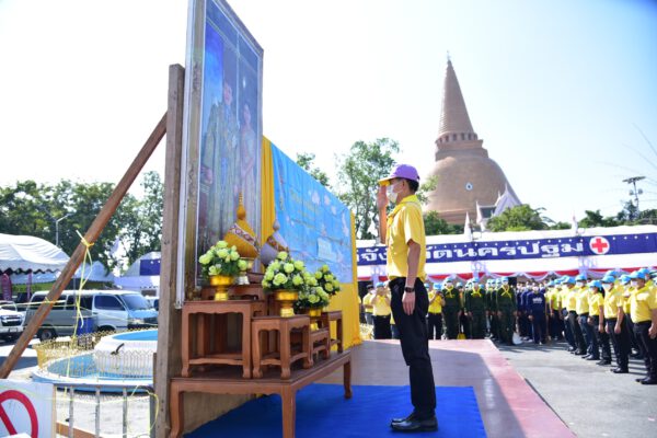 วันที่ 4 พ.ย.2565 ที่บริเวณลานหน้าพระร่วงโรจนฤทธิ์ องค์พระปฐมเจดีย์ อำเภอเมืองจังหวัดนครปฐม นายสุรศักดิ์ เจริญศิริโชติ ผู้ว่าราชการจังหวัดนครปฐม เป็นประธานถวายความเคารพ เปิดกรวยกระทงดอกไม้ธูปเทียนแพ หน้าพระบรมฉายาลักษณ์พระบาทสมเด็จพระเจ้าอยู่หัว และพระฉายาลักษณ์สมเด็จพระนางเจ้าฯพระบรมราชินีพร้อมนำจิตอาสาพระราชทานร่วมกิจกรรมจิตอาสาพัฒนา ทำความสะอาด ปรับภูมิทัศน์บริเวณวัดพระปฐมเจดีย์ ราชวรมหาวิหาร เพื่อเตรียมการรับเสด็จพระเจ้าวรวงศ์เธอ พระองค์เจ้าสิริภาจุฑาภรณ์ เสด็จพระราชดำเนินมาทรงบำเพ็ญพระกุศลถวายผ้าพระกฐิน ประจำปี 2565 ณ วัดพระปฐมเจดีย์ ราชวรมหาวิหาร อำเภอเมืองนครปฐม ในวันที่ 7 พฤศจิกายน 2565 เวลา 17.00 น. โดยมีรองผู้ว่าราชการจังหวัด นายกเหล่ากาชาดจังหวัด ปลัดจังหวัด นายอำเภอ ข้าราชการทหาร ตำรวจ จิตอาสาพระราชทานร่วมกิจกรรมในครั้งนี้