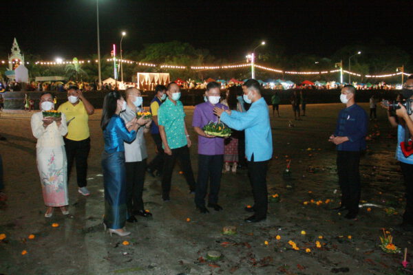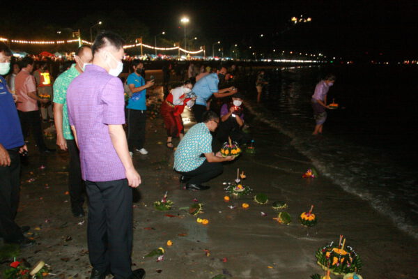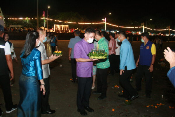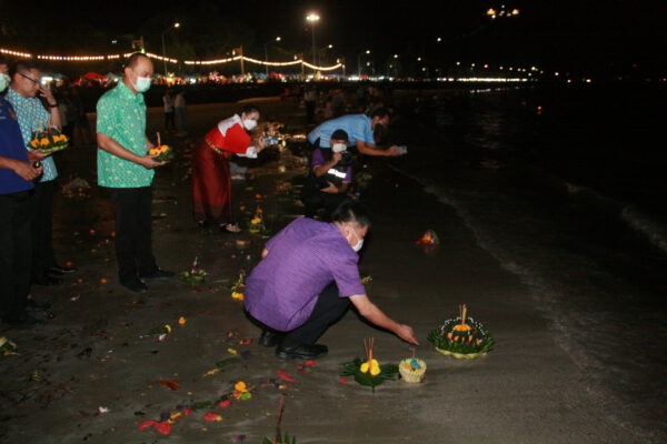 จากนั้น ผู้ว่าราชการจังหวัด ประธานในพิธี พร้อมรองผู้ว่าราชการจังหวัด และผู้เข้าร่วมในงาน ได้ร่วมลอยกระทงที่บริเวณชายทะเลหน้าสะพานสราญวิถี ก่อนร่วมลอยกระทงเทียน ที่บริเวณองค์พระอุปคุต ที่บริเวณด้านหน้าสะพานสราญวิถี โดยมีประชาชนที่ต่างเดินทางมาลอยกระทง ที่บริเวณดังกล่าวจำนวนมาก/////////