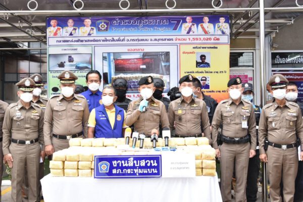 1,593,020 เม็ด สอบถามนายสรัล หรือ ต้นฯ (ผู้ต้องหาที่ 1) ให้การว่ายาข้าที่ตรวจพบภายในห้องพักนั้น น.ส.นัยนา หรือหนิงฯ (ผู้ต้องหาที่ 2) เป็นผู้ว่าจ้างให้ตนเฝ้า โดยตกลงค่าจ้างกันวันละ 1,000 บาท จากนั้น นายสรัล หรือต้นฯ (ผู้ต้องหาที่ 1) ได้นำเจ้าหน้าที่ตำรวจชุดจับกุม ไปที่หน้าห้องเช่า ต.คลองมะเดือ อ.กระทุ่มแบน จ.สมุทรสาครพบ น.ส.นัยนา หรือหนิงฯ (ผู้ต้องหาที่ 2) จึงจับกุมนำตัวผู้ต้องหาทั้ง 2 ราย พร้อมของกลางนำส่ง พงส.สภ.กระทุ่มแบน ดำเนินคดีตามกฎหมายต่อไป