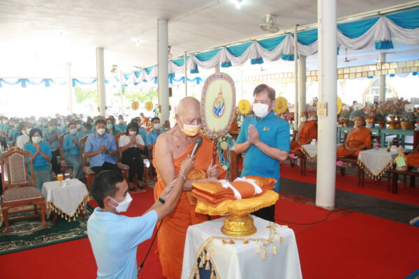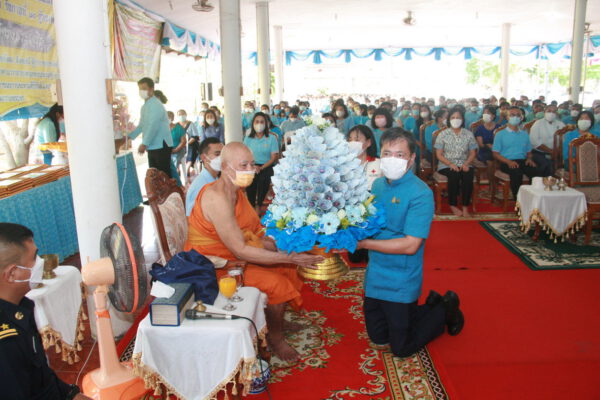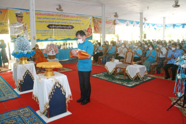 โดยผู้ว่าราชการจังหวัด จุดธูปเทียนบูชา กราบพระรัตนตรัย และเปิดกรวยดอกไม้ ธูป เทียนแพ ถวายสักการะหน้าพระบรมฉายาลักษณ์ พระบาทสมเด็จพระวชิรเกล้าเจ้าอยู่หัว จากนั้น เปิดกรวยดอกไม้ ธูป เทียนแพ ถวายสักการะหน้าพระบรมฉายาลักษณ์ สมเด็จพระนางเจ้าสิริกิติ์ พระบรมราชินีนาถ พระบรมราชชนนีพันปีหลวง โดยต่อมา อนุศาสนาจารย์ นำกล่าวถวายผ้าป่า พระสงฆ์พิจารณาผ้าป่า จากนั้น ผู้ว่าราชการจังหวัด ถวายพุ่มผ้าป่า กับ พระเทพสิทธิวิมล เจ้าคณะภาค 15 ก่อนที่ พระเทพสิทธิวิมล จะนำพุ่มผ้าป่าทั้งหมด มอบคืนกลับมายังผู้ว่าราชการจังหวัด เพื่อนำกลับมามอบให้กับหมู่บ้าน/ชุมชนกองทุนแม่ของแผ่นดิน นำกลับไปใช้ในการแก้ไขปัญหายาเสพติดในหมู่บ้านตนเองต่อไป