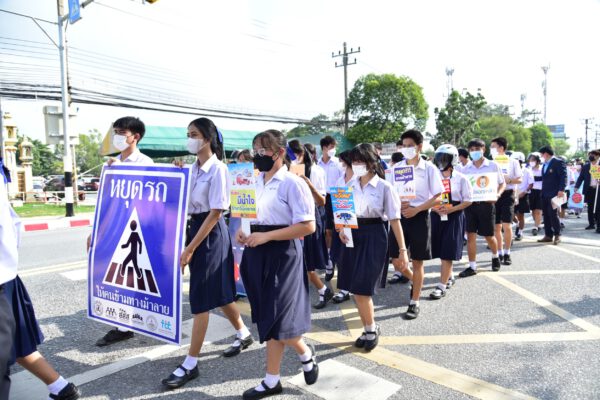 วันที่ 29 พฤศจิกายน 2565 ที่บริเวณถนนหน้าโรงเรียนวัดไร่ขิงวิทยา อำเภอสามพรานจังหวัดนครปฐม นายคมสัน เจริญอาจ รองผู้ว่าราชการจังหวัดนครปฐม เป็นประธานเปิดกิจกรรม ลดอุบัติเหตุทางถนน ลดความสูญเสีย (นครปฐมห่วงใย) ทางข้ามปลอดภัย วาระจังหวัด วาระหมวกนิรภัย โดยมี นายอำเภอสามพราน หัวหน้าสำนักงานป้องกันและบรรเทาสาธารณภัยจังหวัด ขนส่งอำเภอสามพราน ผู้แทนแขวงทางหลวงสมุทรสาคร หัวหน้าส่วนราชการ ภาคีเครือข่าย นักเรียน และประชาชนเข้าร่วมกิจกรรมพร้อมเดินขบวนรณรงค์แจกสื่อประชาสัมพันธ์ให้ประชาชนได้รับทราบ