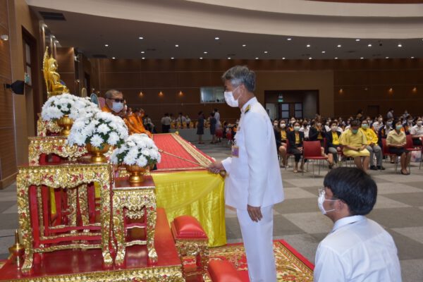 วันที่ 2 ธันวาคม 2565 ดร.วิรัตน์ ปิ่นแก้ว อธิการบดีมหาวิทยาลัยราชภัฏนครปฐม พร้อมด้วยคณะผู้บริหารมหาวิทยาลัยราชภัฏนครปฐม ผู้บริหารสำนักศิลปวัฒนธรรมคณาจารย์ บุคลากร นักศึกษา และนักเรียนโรงเรียนสาธิตมหาวิทยาลัยราชภัฏนครปฐม ต่างร้อยรวมดวงใจเป็นหนึ่ง เพื่อแสดงความจงรักภักดีและน้อมรำลึกในพระมหากรุณาธิคุณอันหาที่สุดมิได้ เนื่องในวันคล้ายวันพระบรมราชสมภพของพระบาทสมเด็จพระบรมชนกาธิเบศร มหาภูมิพลอดุลยเดชมหาราช บรมนาถบพิตร วันชาติของไทย และวันพ่อแห่งชาติ ณ หอประชุมปิ่นเกลียว มหาวิทยาลัยราชภัฏนครปฐม