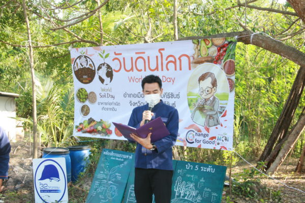 เมื่อเวลา 15.00 น. วันที่ 13 ธ.ค.65 ที่ศูนย์เรียนรู้ทฤษฎีใหม่ รูปแบบ โคก หนอง นา โมเดล ของนางสาวบุญส่ง ปานนก หมู่ที่ 8 บ้านหนองแก ต.เกาะหลัก อ.เมือง จ.ประจวบคีรีขันธ์ นายธนนท์ พรรพีภาส นายอำเภอเมืองประจวบฯ เป็นประธานเปิดงานวันดินโลก(World Soil Day) ปี 2565 ของอำเภอเมืองประจวบคีรีขันธ์ ภายใต้ชื่อกิจกรรม “Great food from good soil for better life awareness week” หรือ ดินดี อาหารดี ชีวีมีสุข โดยมี นางพิสมัย ศักดิ์เกิด พัฒนาการอำเภอเมืองฯ กล่าวรายงาน มี นายดำรงค์ มากระจัน พัฒนาการจังหวัด นายสุวิทย์ เยื่อใย นายกองค์การบริหารส่วนตำบลเกาะหลัก นางอุราวรรณ ภู่เพ็ชร์ เกษตรอำเภอเมืองฯ นายธนะกิจ แทนคุณ ปลัด อบต.เกาะหลัก พระใบฎีกาสิทธิศักดิ์ ปิยธมฺโม วัดเกาะหลัก พระอารามหลวง นายณภัทร ชุ่มจิตตรี หรือ คิง ก่อนบ่าย ดาราศิลปินตลกชื่อดังซึ่งเป็นลูกหลานชาวประจวบฯ ส่วนราชการ ผู้ใหญ่บ้าน ผู้นำชุมชน ครูและนักเรียนโรงเรียนบ้านทุ่งเคล็ด ชาวบ้านในพื้นที่ตำบลเกาะหลัก ข้าราชการและเจ้าหน้าที่สำนักงานพัฒนาชุมชน เข้าร่วม