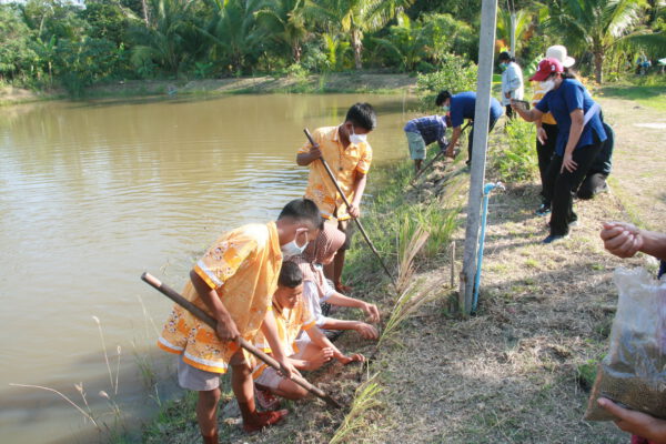 จากนั้นได้ทำ “แซนด์วิชปลา” โดยใช้วัสดุที่หาได้ในท้องถิ่น ช่วยลดค่าใช้จ่ายในการซื้ออาหารปลา และยังเป็นการบำบัดรักษาน้ำด้วยการสร้างระบบนิเวศที่เหมาะสม สร้างอาหารปลอดภัยจากสารเคมี ซึ่งวิธีทำแซนวิซปลา สำหรับบ่อน้ำหรือหนองน้ำ จะทำแซนด์วิชปลาไว้ที่ริมตลิ่ง โดยใช้ลำไม้ไผ่ปักลงไปถี่ ๆ ให้เป็นวงโค้งครึ่งวงกลม หากบ่อมีขนาดใหญ่ก็ควรจะทำหลาย ๆ จุด ส่วนในพื้นที่เล็ก เช่น คลองไส้ไก่หรือคูน้ำรอบนาข้าว ก็สามารถเลี้ยงปลาได้เช่นกัน โดยใช้ไม้ไผ่เหลาแล้วสานเป็นเสวียน จากนั้นจึงนำไปปักลงไปในคลองไส้ไก่หรือคูน้ำเมื่อมีไม้ไผ่หรือเสวียนเป็นเสมือนภาชนะแล้ว จึงใส่ฟาง ผักตบชวา หรือใบไม้สุมลงไปให้มีความสูง 1 ฟุต หรือ 1 ศอก ย่ำให้แน่น ใส่ปุ๋ยคอก และรดน้ำหมักจุลินทรีย์ชีวภาพ โดยทำสลับกับเป็นชั้น ๆ จนเต็มคอกหรือเสวียน