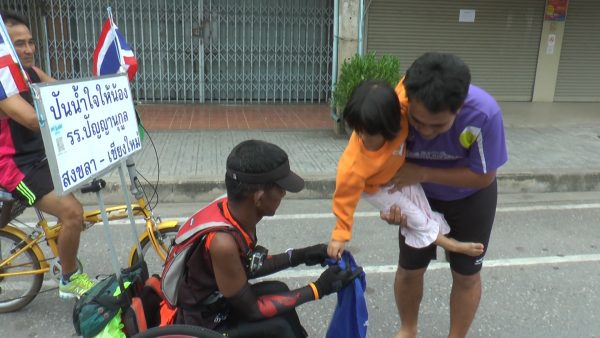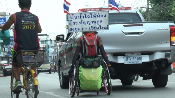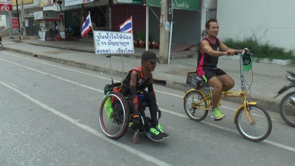 ผู้สื่อข่าวรายงานว่า จากกรณีที่ นายสาธิต จันทรังษี อายุ 55 ปี หรือลุงหมีชาว จ.พิษณุโลก ซึ่งพิการท่อนล่างด้วยโรคกล้ามเนื้ออ่อนแรง แต่ยังคงมีหัวใจที่แข็งแกร่ง ได้เริ่มต้นโครงการ “ปันน้ำใจให้น้อง โรงเรียนปัญญานุกูล 48 แห่งทั่วประเทศ” โดยการปั่นวีลแชร์ด้วยมือเปล่าจาก จ.สงขลา ตั้งแต่วันที่ 9 มิ.ย.ที่ผ่านมา ปลายทางคือ จ.เชียงใหม่ รวมระยะทางกว่า 1,600 กม. โดยมีเป้าหมายเพื่อสร้างความตระหนัก และระดมจากผู้มีจิตศรัทธา รวมทั้งผู้ใจบุญนำไปช่วยเหลือเด็กผู้พิการ ใน รร.ปัญญานุกูล หรือโรงเรียนสำหรับเด็กพิการ ทั้ง 48 แห่งทั่วประเทศนั้น