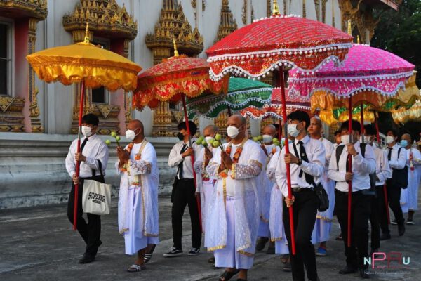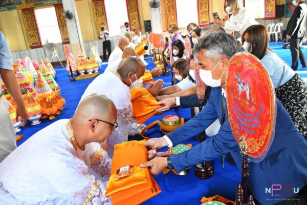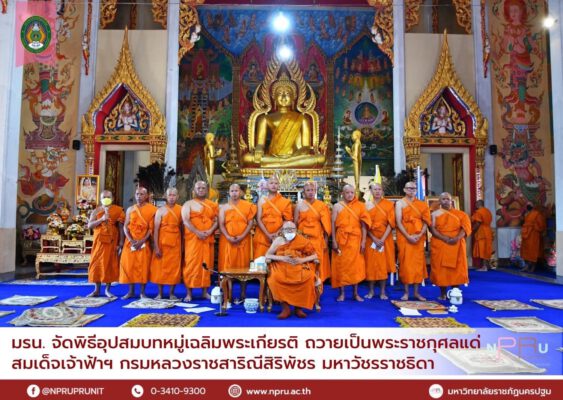 วันนี้ (7 มกราคม) มหาวิทยาลัยราชภัฏนครปฐม จัดพิธีอุปสมบทหมู่เฉลิมพระเกียรติจำนวน 10 รูป ถวายเป็นพระราชกุศลแด่สมเด็จพระเจ้าลูกเธอ เจ้าฟ้าพัชรกิติยาภา นเรนทิราเทพยวดี กรมหลวงราชสาริณีสิริพัชร มหาวัชรราชธิดา ระหว่างวันที่ 7-15 มกราคม 2566 ณ วัดใหม่ปิ่นเกลียว โดยมี ศาสตราจารย์ ดร.วุฒิสาร ตันไชย นายกสภามหาวิทยาลัยราชภัฏนครปฐม ประธานในพิธีฯ พร้อมด้วย ดร.วิรัตน์ ปิ่นแก้วอธิการบดี ผู้บริหาร คณาจารย์ นักศึกษา และประชาชน ร่วมกันขอถวายพระพรชัยมงคล ด้วยความจงรักภักดี ขออานุภาพแห่งคุณพระศรีรัตนตรัย พระบารมีแห่งพระสยามเทวาธิราช ตลอดจนพระบรมเดชานุภาพ แห่งสมเด็จพระบูรพมหากษัตริยาธิราชเจ้าทุกพระองค์ ได้โปรดดลบันดาลอภิบาลและประทานพรให้ใต้ฝ่าละอองธุลีพระบาททรงพระเกษมสำราญ มีพระราชประสงค์จำนงหมายสิ่งใด ขอจงสัมฤทธิ์ดั่งพระราชหฤทัยปรารถนา มีพระเกียรติคุณขจรขจายแผ่ไพศาล ทรงสถิตเป็นมิ่งขวัญร่มเกล้าแก่พสกนิกรชาวไทย ดั่งที่ได้ปฏิบัติพระกรณียกิจด้วยพระจริยวัตรที่งดงาม พระปรีชาสามารถและพระกรุณาธิคุณอันหาที่สุดมิได้ พระกรณียกิจนานัปการด้วยพระวิริยะอุตสาหะ พระเนตรและรอยยิ้มที่แสนอบอุ่นในวันพระราชทานปริญญาบัตรแก่บัณฑิตมหาวิทยาลัยราชภัฏ คือ ภาพที่เปี่ยมล้นด้วยความเมตตาแก่บัณฑิต ผู้ปกครอง และพสกนิกรต่างสำนึกในพระมหากรุณาธิคุณอย่างหาที่สุดมิได้