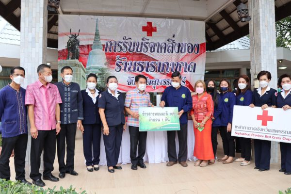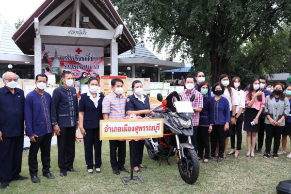 ที่ศาลารวมใจ จวนผู้ว่าราชการจังหวัดสุพรรณบุรี นายณัฐภัทร สุวรรณประทีป ผวจ.สุพรรณบุรี พร้อมด้วยนางนภัสสร สุวรรณประทีป นายกเหล่ากาชาดจังหวัดสุพรรณบุรี ให้การต้อนรับหน่วยงานราชการ ภาคเอกชน องค์กรปกครองส่วนท้องถิ่นและภาคประชาชน นำสิ่งของบริจาคมามอบให้กับกาชาด เพื่อนำไปเป็นรางวัลในการจัดกิจกรรมการกุศลธารากาชาด ในงานอนุสรณ์ดอนเจดีย์ ประจำปี 2566 ระหว่างวันที่ 18 มกราคม – 1 กุมภาพันธ์ 2566 บริเวณพระบรมราชานุสรณ์ดอนเจดีย์ อ.ดอนเจดีย์ จ.สุพรรณบุรี
