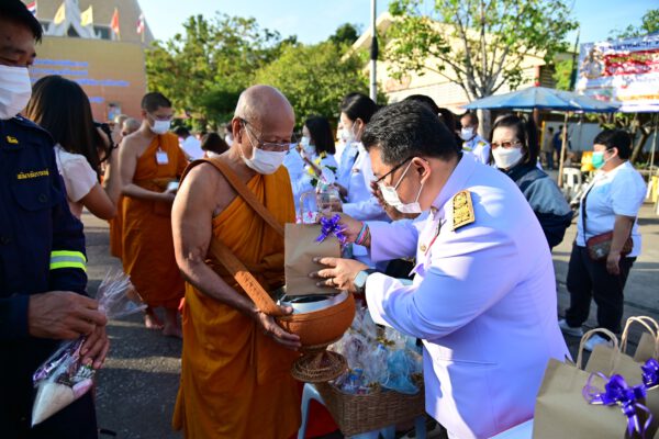 วันที่ 19 มกราคม 2566 ที่ศาลากองอำนวยการองค์พระปฐมเจดีย์ อำเภอเมือง จังหวัดนครปฐม นายสุรศักดิ์ เจริญศิริโชติ ผู้ว่าราชการจังหวัดนครปฐม เป็นประธานพิธีทำบุญตักบาตรพระสงฆ์ 99 รูป โครงการบรรพชาอุปสมบท 99 รูป ถวายพระพรชัยมงคลสมเด็จพระเจ้าลูกเธอ เจ้าฟ้าพัชรกิติยาภา นเรนทิราเทพยวดี กรมหลวงราชสาริณีสิริพัชร มหาวัชรราชธิดา โดยมีรองผู้ว่าราชการจังหวัด ปลัดจังหวัด นายอำเภอข้าราชการทหาร ตำรวจ หัวหน้าส่วนราชการ และประชาชน ร่วมพิธีเป็นจำนวนมาก