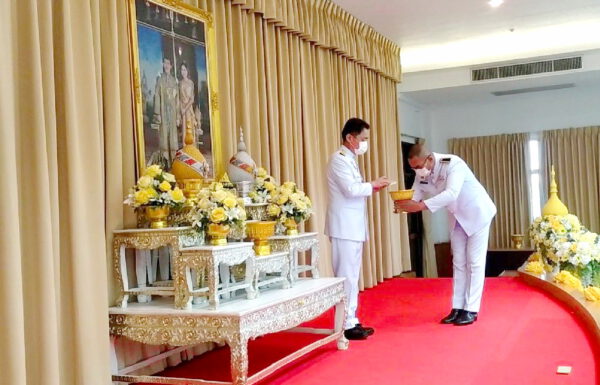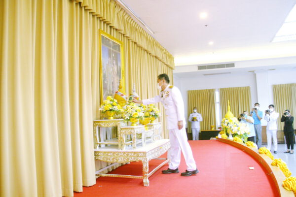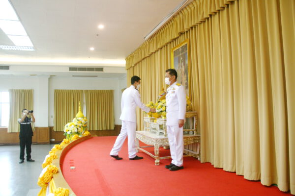 จากนั้น ผู้ว่าราชการจังหวัด ประธานในพิธี ถวายความเคารพเบื้องหน้าพระบรมฉายาลักษณ์ พระบาทสมเด็จพระเจ้าอยู่หัว และสมเด็จพระนางเจ้าฯ พระบรมราชินี พร้อมเปิดกรวยกระทงดอกไม้ เครื่องราชสักการะ โดย ผู้ว่าราชการจังหวัดรับปฏิทินหลวงฯจากเจ้าหน้าที่สำนักงานวัฒนธรรมจังหวัด ซึ่งเป็นผู้เชิญพาน เพื่อไปวางบนพานเบื้องหน้าพระบรมฉายาลักษณ์ ต่อจากนั้น ผู้เข้ารับปฏิทินหลวงฯทั้ง 2 ราย เดินไปประจำจุดด้านหน้าพระบรมฉายาลักษณ์ ถวายความเคารพ และรับพระราชทานปฏิทินหลวงบนพาน เบื้องหน้าพระบรมฉายาลักษณ์ เป็นอันเสร็จพิธี