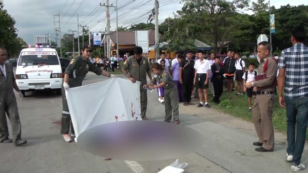 จากการสอบถาม นายสุรพงษ์ ปิ่นแก้ว ครูสอนดนตรีโรงเรียนคุรุประชาสรรค์ ผู้เห็นเหตุการณ์เล่าว่า ขณะนั้นตนกำลังขี่รถตามรถบรรทุกมา และสังเกตว่าผู้ตายขับขี่รถจักรยานยนต์มาด้วยความเร็ว จากนั้นเห็นผู้ตายหันกลับหลัง พะวง เหมือนมีของล่วง พอเงยหน้าขึ้นมาเห็นรถพ่วงมาพอดี เกิดตกใจ แต่ก็เบรคไม่ทันพุ่งชนเข้าที่ล้อหลังของตัวแม่ จากนั้นพ่วงตัวลูกเหยียบม้วนร่างจนเสียชีวิต