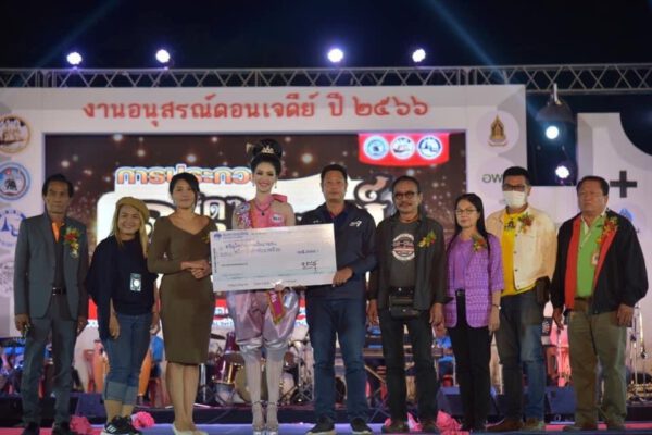 ที่เวทีกลางหน้าพระบรมราชานุสรณ์ดอนเจดีย์ นายณัฐภัทร สุวรรณประทีป ผวจ.สุพรรณบุรี พร้องนาง นภัสสร สุวรรณประทีป นายกเหล่ากาชาดจังหวัด พร้อมด้วยรองผู้ว่าราชการจังหวัด และปลัดจังหวัด ร่วมมอบรางวัลให้แก่ธิดาดอนเจดีย์ ประจำปี 2566กระตุ้นเศรษฐกิจ ส่งเสริมการท่องเที่ยว ในงานอนุสรณ์ดอนเจดีย์ ประจำปี 2566ซึ่งจัดขึ้นระหว่างวันที่ 18 มกราคม – 1 กุมภาพันธ์ 2566 ณ พระบรมราชานุสรณ์ดอนเจดีย์ อำเภอดอนเจดีย์ จังหวัดสุพรรณบุรี เพื่อเป็นการเทิดพระเกียรติสมเด็จพระนเรศวรมหาราช โดยในปีนี้ องค์การบริหารส่วนจังหวัดสุพรรณบุรี เปิดให้สาวงามจากทั่วประเทศมีสิทธิ์สมัครเข้าประกวดธิดาดอนเจดีย์ ซึ่งได้มีสาวงามจากทั่วประเทศ เดินทางมาสมัครเข้าประกวดธิดาดอนเจดีย์ ปี 2566 และผ่านรอบออดิชั่น จำนวน 34 คน ซึ่งทำการประกวดเมื่อคืนวันที่ 25 มกราคม 2566 ที่ผ่านมา โดยผู้เข้าประกวดต้องแต่งกายด้วยชุดตะเบงมาน