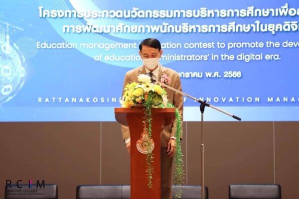 ในวันเสาร์ที่ 28 มกราคม 2566 มทร.รัตนโกสินทร์ นำโดย รองศาสตราจารย์ ดร.อุดมวิทย์ ไชยสกุลเกียรติ อธิการบดี กล่าวต้อนรับศาสตราจารย์ ดร.สัมพันธ์ ฤทธิเดชเลขาธิการคณะกรรมการการอุดมศึกษา ประธานในพิธีเปิดโครงการประกวดนวัตกรรมการบริหารการศึกษาเพื่อส่งเสริมการพัฒนาศักยภาพนักบริหารการศึกษาในยุคดิจิทัล“Education management innovation contest to promote the development of education administrators’ in the digital era” วิทยาลัยนวัตกรรมการจัดการมทร.รัตนโกสินทร์ โดยมีผู้ร่วมโครงการเป็นนักศึกษาหลักสูตรศึกษาศาสตรมหาบัณฑิตและหลักสูตรปรัชญาดุษฎีบัณฑิต สาขานวัตกรรมการบริหารการศึกษา ของวิทยาลัยนวัตกรรมการจัดการ มหาวิทยาลัยเทคโนโลยีราชมงคลรัตนโกสินทร์ ณ ห้องประชุมบัวสวรรค์ มหาวิทยาลัยเทคโนโลยีราชมงคลรัตนโกสินทร์ ศาลายา