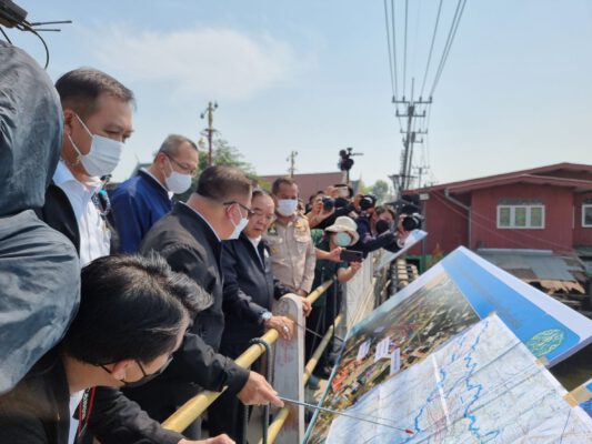 วันที่ 1 กุมภาพันธ์ 2566 ห้องประชุมการไฟฟ้าส่วนภูมิภาค ภาคกลางเขต 3 อำเภอนครชัยศรี จังหวัดนครปฐม พล.อ.ประวิตร วงษ์สุวรรณ รองนายกรัฐมนตรี ในฐานะผู้อำนวยการกองอำนวยการน้ำแห่งชาติ (กอนช.) ลงพื้นที่ติดตามความก้าวหน้าโครงการพัฒนาแหล่งน้ำในพื้นที่จังหวัด และติดตามความคืบหน้าโครงการก่อสร้างประตูระบายน้ำ และกำแพงป้องกันตลิ่งริมคลองบางแก้ว อ.นครชัยศรี พร้อมทั้งเป็นประธานประชุมติดตามการดำเนินงานแก้ไขปัญหาอุทกภัยในลุ่มน้ำท่าจีน เพื่อรับทราบผลการดำเนินงานแก้ไขปัญหาอุทกภัยในลุ่มน้ำท่าจีน และแผนงานโครงการพัฒนาแหล่งน้ำที่สำคัญในพื้นที่ ตลอดจนผลการระบายน้ำและแผนบรรเทาอุทกภัยในพื้นที่จ.นครปฐม โดยมีนายสุรศักดิ์ เจริญศิริโชติ ผู้ว่าราชการจังหวัดนครปฐม นายสุรสีห์กิตติมณฑล เลขาธิการ สนง.ทรัพยากรน้ำแห่งชาติ ตลอดจน อธิบดีกรมชลประทาน รองอธิบดีกรมโยธาธิการและผังเมือง ข้าราชการ และประชาชน ให้การต้อนรับ