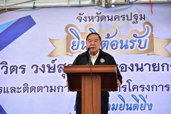 พล.อ.ประวิตร วงษ์สุวรรณ รองนายกรัฐมนตรี กล่าวว่า วันนี้ได้มีโอกาสลงพื้นที่จังหวัดนครปฐม เพื่อติดตามความก้าวหน้าโครงการก่อสร้างประตูระบายน้ำ รวมถึงการก่อสร้างกำแพงป้องกันตลิ่ง ริมคลองบางแก้ว ทั้งนี้ได้กำชับให้ดำเนินการเป็นไปตามแผนเพื่อแก้ไขให้กับพี่น้องประชาชน ที่ผ่านมาประชาชนสองฝั่งริมแม่น้ำท่าจีน บริเวณพื้นที่อำเภอนครชัยศรี ได้รับความเดือดร้อนจากปริมาณน้ำแม่น้ำท่าจีน เอ่อล้นท่วมขังเป็นจำนวนมาก และมีความห่วงใยเป็นอย่างยิ่งจึงได้สั่งการให้เร่งดำเนินการโครงการก่อสร้างประตูระบายน้ำคลองบางแก้ว และโครงการก่อสร้างกำแพงป้องกันตลิ่งริมคลองบางแก้วให้แล้วเสร็จ เพื่อแก้ไขปัญหาความเดือดร้อนให้โดยเร็ว พร้อมทั้งสั่งการให้หน่วยงานต่างๆ เร่งรัดดำเนินการแก้ไขปัญหาอุทกภัย และการรุกตัวของน้ำเค็มในพื้นที่ลุ่มน้ำท่าจีนอื่นๆ อีกด้วย และขอให้ประชาชนมั่นใจว่ารัฐบาลมีเป้าหมายในการทำงานโยยึดความผาสุกของประชาชนเป็นสำคัญและจะมุ่งมั่นแก้ไขปัญหาเรื่องน้ำให้สำเร็จตามเป้าหมาย เพื่อสร้างรากฐานที่มั่นคงให้กับประเทศต่อไป