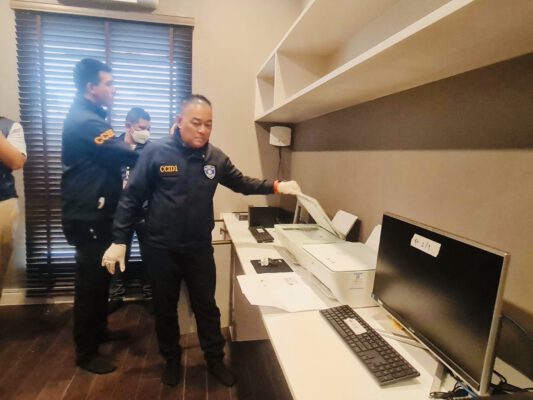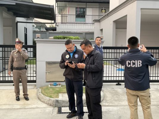 ต่อมาเช้าวันนี้ (3 กุมภาพันธ์ 2566) พล.ต.ต.วิวัฒน์ คำชำนาญ รอง ผบช.สอท. พร้อมด้วย พล.ต.ต.ชัชปัณฑกานต์ คล้ายคลึง ผบก.สอท.1 พร้อมเจ้าหน้าที่ตำรวจในสังกัด บก.สอท.1 ได้นำหมายค้นของศาลอาญา เข้าตรวจค้นที่บ้านหรูหลังหนึ่ง ถนนเลียบคลองประปา ตำบลบ้านใหม่ อำเภอปากเกร็ด จังหวัดนนทบุรี ซึ่งจากการสืบสวนพบว่า บ้านหลังนี้เป็นบ้านพักของ นายณัฐพงศ์ ระชินลา ผู้ต้องหาหนึ่งในขบวนการ ซึ่งทำหน้าที่การเงินการธนาคาร และรวบรวมโพยพนัน