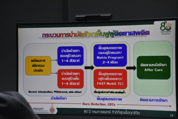 เมื่อ วันที่ 3 กุมภาพันธ์ 2566 คณะนักศึกษาหลักสูตรการบริหารความมั่นคงสำหรับผู้บริหารระดับสูง (สวปอ.มส. SML) รุ่นที่ 4 กลุ่มวิชาการสังคมจิตวิทยา 3 ได้ลงพื้นที่ศึกษาดูงาน ณ สถานบำบัดรักษาและฟื้นฟูผู้ติดยาเสพติดแห่งชาติ (สบยช.) อ.ธัญบุรีโดยได้รับความอนุเคราะห์จาก นายแพทย์สรายุทธ์ บุญชัยพานิชวัฒนา ผอ.สบยช. / ศิษย์เก่า สวปอ.มส. SML รุ่นที่ 1 (หมู่ไก่ฟ้า) ให้การต้อนรับ บรรยายสรุป ตอบข้อซักถาม และคณะได้เข้าเยี่ยมชมการปฏิบัติงานการบำบัดรักษาและฟื้นฟูผู้ติดยาเสพติด ในทุกมิติ