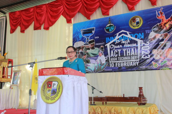 เมื่อเวลา 09.00 น. วันที่ 10 ก.พ.2566 ที่วิทยาลัยเทคโนโลยีประจวบคีรีขันธ์ ( P-TECH ) ต.คลองวาฬ อ.เมือง จ.ประจวบคีรีขันธ์ นางกฤษณา แผ่แสงจันทร์ วัฒนธรรมจังหวัดประจวบคีรีขันธ์ เป็นประธานเปิดงาน เปิดบ้าน“Act Thai High Technology 2023 ” โดยมี นายเสทือน ลิบลับ ประธานสภาวัฒนธรรมอำเภอเมืองประจวบฯ กล่าวรายงาน มี นายชาญวิทย์ อุณหสุทธิยานนท์ ประธานสภาวัฒนธรรมจังหวัด นายสมชาย ปี่แก้ว นายก อบต.คลองวาฬ นางวรรณา ศรีจุฬางกูล รองนายกเทศมนตรีเมืองประจวบฯ น.ส.ศรีสุลักษณ์ เจิมเจียม ที่ปรึกษานายกเทศมนตรีตำบลคลองวาฬ นายยูซบ โต๊ะวัง ประธานคณะกรรมการอิสลามประจำจังหวัดประจวบฯ พล.อ.ต.อำนาจ ขวัญเมือง ประธานคณะกรรมการถนนสายวัฒนธรรมสู้ศึก ประธานสภาวัฒนธรรมในแต่ละอำเภอ เครือข่ายสภาวัฒนธรรม คณะกรรมการสภาวัฒนธรรมอำเภอเมือง ผู้แทนสำนักงานเครือข่ายองค์กรงดเหล้า (สคล.) ภาคตะวันตก ผู้แทนเครือข่ายองค์กรงดเหล้าจังหวัดประจวบฯ สสส. ผู้แทนสำนักงานเขตพื้นที่การศึกษาประถมศึกษาประจวบฯ(สพป.) เขต 1 ผู้แทนสำนักงานเขตพื้นที่มัธยมศึกษาฯ (สพม.) เช้าร่วม โดยมี นายสมชาย ทิพย์ประเสริฐสุข ผู้อำนวยการวิทยาลัยเทคโนโลยีประจวบฯ คณาจารย์ และนักศึกษา ให้การต้อนรับ
