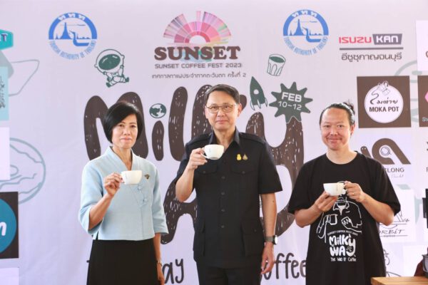 วันที่ 10 กุมภาพันธ์ 2566 ณ เดอะไซท์ริเวอร์แคว อำเภอเมืองกาญจนบุรี ร้อยโททศพล ไชยโกมินทร์ ผู้ว่าราชการจังหวัดกาญจนบุรี เป็นประธานเปิดงาน Sunset Coffee Fest 2023 (เทศกาลกาแฟแห่งภาคตะวันตก ครั้งที่ 2) “Milky Way, the Way of Coffee” โดยมีนางสาวสรียา บุญมาก ผู้อำนวยการ ททท. สำนักงานกาญจนบุรี นายธนเดช อธิชาธีทัต ประธานกลุ่มกาแฟพิเศษกาญจนบุรี พร้อมหัวหน้าส่วนราชการองค์กรภาคเอกชน และสื่อมวลชน เข้าร่วมงานจำนวนมาก