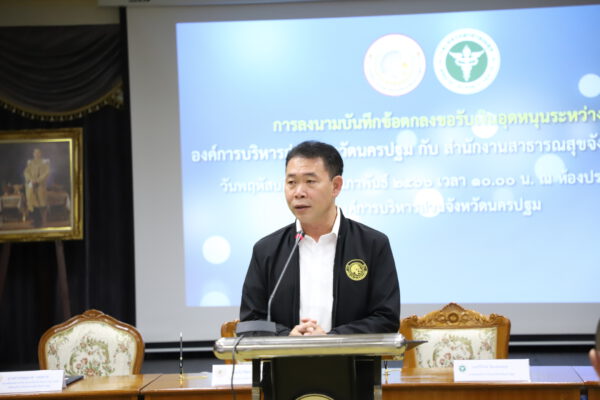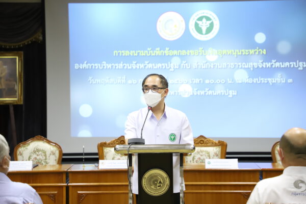 และโครงการรณรงค์ป้องกันและแก้ไขปัญหายาเสพติด (TO BE NUMBER ONE) จังหวัดนครปฐม งบประมาณ 1,500,000 บาท รวมเป็นเงินทั้งสิ้น 9,902,000บาท กับองค์การบริหารส่วนจังหวัดนครปฐมนั้น องค์การบริหารส่วนจังหวัดนครปฐมเห็นว่าโครงการด้านสาธารณสุขดังกล่าวเป็นประโยชน์ต่อประชาชนในจังหวัดนครปฐม โดยปัญหายาเสพติดเป็นปัญหาสำคัญระดับชาติ ซึ่งส่งผลกระทบในวงกว้างต่อสังคม เนื่องจากเป็นภัยต่อความมั่นคง และส่งผลกระทบต่อความสงบสุขของประชาชน ซึ่งทุกภาคส่วนมีส่วนร่วมในการป้องกันและแก้ไขปัญหาดังกล่าว อีกทั้ง ปี 2563 – 2565 ที่ผ่านมา สถานการณ์ระบาดของโรคติดเชื้อไวรัสโคโรนา 2019 มีผู้ติดเชื้อ และเสียชีวิตเป็นจำนวนมาก จังหวัดนครปฐมเป็นจังหวัดที่เป็นพื้นที่สีแดงที่มีการแพร่ระบาดและมีผู้ติดเชื้อจำนวนมาก การรองรับผู้ป่วยติดเชื้อมีความจำเป็นต้องได้รับบริการห้องผ่าตัดเพิ่มจำนวนมาก แต่โรงพยาบาลหลายๆแห่งงดให้บริการ และไม่มีความพร้อมรับผู้ป่วย ทำให้ผู้ป่วยที่มีความจำเป็นต้องได้รับการผ่าตัดต้องรอเวลา ดังนั้น “โครงการปรับปรุงห้องผ่าตัดที่มีระบบคุมอากาศปลอดเชื้อของโรงพยาบาลนครชัยศรี” จะเป็นการเพิ่มศักยภาพการให้บริการและอำนวยความสะดวกแก่ผู้ป่วยประกอบกับขณะนี้สถานการณ์โรคไข้เลือดออกของจังหวัดนครปฐม เป็นปัญหาสำคัญเนื่องจากพบอัตราผู้ป่วยไข้เลือดออก เป็นอันดับ 1 ของประเทศ จึงควรมีการป้องกันและควบคุมการแพร่ระบาดของโรคไข้เลือดออก และโรคติดต่อนำโดยยุงลาย ในการลงนามบันทึกข้อตกลงการรับเงินอุดหนุนระหว่าง องค์การบริหารส่วนจังหวัดนครปฐม กับ สำนักงานสาธารณสุขจังหวัดนครปฐม ในครั้งนี้หวังเป็นอย่างยิ่งว่าจะเป็นอีกหนึ่งการทำงานร่วมกัน เพื่อพัฒนาคุณภาพชีวิตของประชาชนจังหวัดนครปฐมในด้านสาธารณสุข และขอขอบคุณสำนักงานสาธารณสุขจังหวัดนครปฐมในการร่วมกันพัฒนาคุณภาพชีวิตของประชาชนชาวจังหวัดนครปฐมไปด้วยกันกับองค์การบริหารส่วนจังหวัดนครปฐม