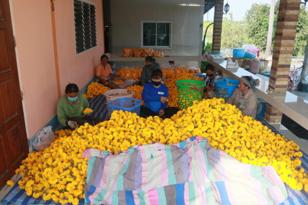 นางพร ชีพนุรัตน์ อายุ 50 ปี เจ้าของสวนดอกดาวเรือง ตั้งอยู่ที่ ม.4 ต.สวนแตง อ.เมือง จ.สุพรรณบุรี กล่าวว่าตนประกอบอาชีพปลูกดอกดาวเรืองมานานกว่า 10 ปี ปกติ จะตัดดอกดาวเรืองส่งไปขายที่ปากคลองตลาด กทม. ราคาส่งก็ขึ้นอยู่กับช่วงเทศกาล หรือ ในแต่ละวัน ราคานั้นไม่นิ่ง ปกติ จะอยู่ที่ดอกละ ประมาณ 1.20-1.80 บาท. สำหรับช่วงเลือกตั้ง ก็ถือว่า มีออร์เดอร์เข้ามาเรื่อยๆ เราก็ปลูกส่งขายกันตลอด ถือว่า คึกคักดี