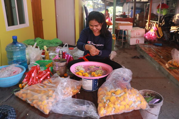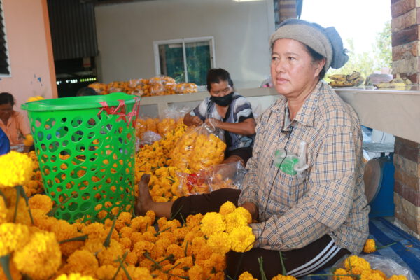 ด้าน นางวาสนา คล้ายสุบรรณ. อาชีพ ขายพวงมาลัย ตนนั้นทำอาชีพร้อยพวงมาลัยขาย ก็ทำมานานกว่า 10 ปี ในช่วงมีการเลือกตั้ง สำหรับพวงมาลัยดอกดาวเรืองที่ใช้ในช่วงหาเสียงเลือกตั้ง ตามที่ลูกค้ามาสั่งก็ต้องใช้ดอกดาวเรืองขนาดใหญ่ ดอกจัมโบ้. พวงมาลัยดอกดาวเรือง ต้องมีขนาดใหญ่ ใช้ดอกดาวเรืองขนาดพิเศษ จะได้ดูสวยงาม ราคาก็ตกอยู่ประมาณ 120-180 บาท ต่อพวง แล้วแต่ขนาดที่ลูกค้าออร์เดอร์เข้ามา