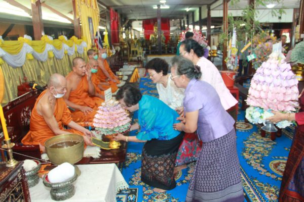 ทั้งนี้โดยก่อนจะเริ่มพิธีทอดผ้าป่าสามัคคี ประธานและผู้เข้าร่วมในพิธี ได้ร่วมจัดถวายภัตตาหารเพล แด่พระภิกษุสงฆ์ สามเณร จากนั้น เมื่อเวลา 13.09 น. นางวรรณี ลิ้มอรุณรักษ์ ประธานฝ่ายฆราวาส และ นายสมศักดิ์ วาจารัตน์ ประธานคณะกรรมการสงเคราะห์ฯ พร้อม กรรมการสงเคราะห์ฯ ได้ร่วมนำพุ่มผ้าป่าถวายกับ พระครูอาทรสาธุกิจ ประธานฝ่ายสงฆ์ พร้อมพระสงฆ์พิจารณาพุ่มผ้าป่า โดย พระครูอาทรสาธุกิจ มีเมตตาพิจารณาผ้าป่าและมอบเงินผ้าป่าทั้งหมดจำนวน 206,306 บาท คืนแก่ สถานพินิจฯ และ กรรมการสงเคราะห์เด็กฯ เพื่อนำไปใช้สนับสนุนกองทุนช่วยเหลือกิจกรรมและสงเคราะห์เด็กและเยาวชนสำหรับสถานพินิจฯให้เป็นคนดีกลับสู่สังคมและประเทศชาติต่อไป