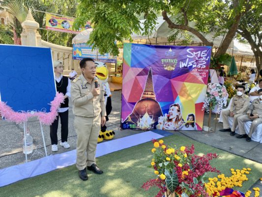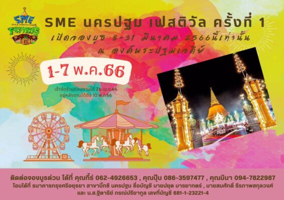 วันจันทร์ที่ 27 มีนาคม 2566 ณ บริเวณด้านหน้าพระร่วงโรจนฤทธิ์ จังหวัดนครปฐมเวลา 14.50 น. นายสมเกียรติ พูลสุขเสริม รองผู้ว่าราชการจังหวัดนครปฐม เป็นประธานกล่าวเปิดงานแถลงข่าวจัดงาน SME Festival ครั้งที่ 1 ประจำปี 2566 และนายสมศักดิ์ธีรภาพสกุลวงศ์ ประธานสมาพันธ์ SME ไทยจังหวัดนครปฐม กล่าวรายงานสรุปความเป็นมา และวัตถุประสงค์ในการจัดงาน