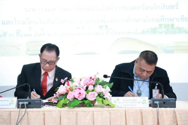 เมื่อวันที่ 30 มีนาคม 2566 ที่ห้องประชุมดอยจอมทอง สำนักงานเขตพื้นที่การศึกษามัธยมศึกษาเชียงราย รองศาสตราจารย์ ดร.อุดมวิทย์ ไชยสกุลเกียรติ อธิการบดีมหาวิทยาลัยเทคโนโลยีราชมงคลรัตนโกสินทร์ นายอรรณพ จูจันทร์ ผู้อำนวยการสำนักงานเขตพื้นที่การศึกษามัธยมศึกษาเชียงราย และ นายบุญเทพ พิศวง นายกสมาคมผู้บริหารโรงเรียนมัธยมศึกษาจังหวัดเชียงราย ได้จัดให้มีการลงนามความร่วมมือในการพัฒนาการศึกษากับโรงเรียนในสังกัดสำนักงานเขตพื้นที่การศึกษามัธยมศึกษาเชียงราย เพื่อดำเนินการพัฒนาการศึกษาร่วมกันระหว่างโรงเรียนระดับมัธยมศึกษาในพื้นที่จังหวัดเชียงราย โดยมีวัตถุประสงค์ ดังนี้