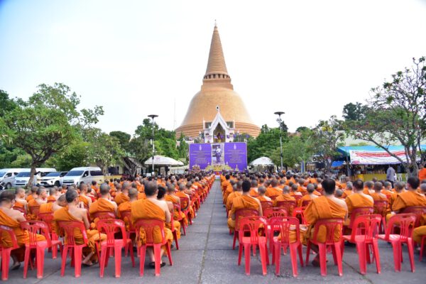 จากนั้นพระเทพมหาเจติยาจารย์ ที่ปรึกษาเจ้าคณะภาค 14 รองเจ้าอาวาสวัดพระปฐมเจดีย์ ราชวรมหาวิหาร นำพระภิกษุสงฆ์ และสามเณรที่เข้าร่วมโครงการบรรพสามเณรนักเรียนโรงเรียนสิรินธรราชวิทยาลัย เฉลิมพระเกียรติสมเด็จพระกนิษฐาธิราชเจ้า กรมสมเด็จพระเทพรัตนราชสุดาฯ สยามบรมราชกุมารี เนื่องในโอกาสวันคล้ายวันพระราชสมภพ จำนวน 994 รูป ร่วมเจริญพระพุทธมนต์เพื่อถวายพระพรชัยมงคล อีกทั้งเพื่อแสดงออกถึงความจงรักภักดี และสำนึกในพระมหากรุณาธิคุณ ที่พระองค์ทรงมีต่อพสกนิกรชาวไทยทั่วทุกหมู่เหล่า ตลอดจนเป็นการเทิดทูนสถาบันพระมหากษัตริย์ ซึ่งเป็นศูนย์รวมจิตใจของคนไทยทั้งชาติ