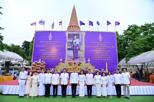 วันที่ 2 เม.ย. 2566 ที่บริเวณลานหน้าพระร่วงโรจนฤทธิ์ องค์พระปฐมเจดีย์ อำเภอเมืองจังหวัดนครปฐม นายสุรศักดิ์ เจริญศิริโชติ ผู้ว่าราชการจังหวัดนครปฐม พร้อมด้วย นายสมเกียรติ พูลสุขเสริม นายยงยุทธ สวนทอง นายชยชัย แสงอินทร์ รองผู้ว่าราชการจังหวัด นางวราภรณ์ เจริญศิริโชติ นายกเหล่ากาชาดจังหวัด ปลัดจังหวัด หัวหน้าส่วนราชการ และประชาชน ร่วมพิธีเจริญพระพุทธมนต์เพื่อถวายพระพรชัยมงคล เนื่องในโอกาสวันคล้ายวันพระราชสมภพ สมเด็จพระกนิษฐาธิราชเจ้า กรมสมเด็จพระเทพรัตนราชสุดาฯ สยามบรมราชกุมารี