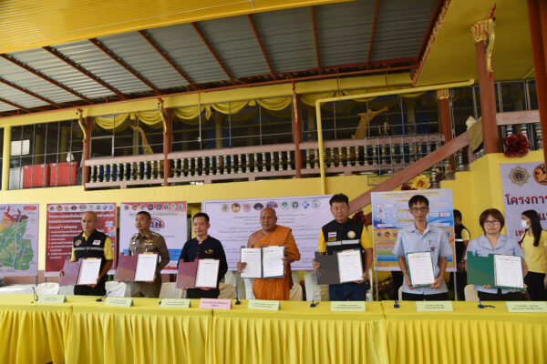 ที่ อาคารเอนกประสงค์วัดประชุมชน ต.บ้านโพธิ์ อ.เมือง จ.สุพรรณบุรี พระครูศรีรัตนาภิวัฒน์ เจ้าอาวาสวัดพระลอย รองเจ้าคณะจังหวัดสุพรรณบุรี นายธราธร แข็งขัน นอภ.เมืองสุพรรณบุรี พล.ต.ต.เกรียงไกร วุฒิพานิช ผบก.ภ.จว.สุพรรณบุรี พ.ต.อ.ธัชชัย ทิพเนตร ผกก.สภ.เมืองสุพรรณบุรี พ.ต.ท.ตะวัน วัฒนรังสรรค์ รอง ผกก.ป.ฯนายวิรัช คำหอมกุล นายก ทต.บ้านโพธิ์ ร่วมพิธีเปิดโครงการดำเนินงานชุมชนยั่งยืน เพื่อแก้ไขปัญหายาเสพติดแบบครบวงจรตามยุทธศาสตร์ชาติ พ.ศ.2566