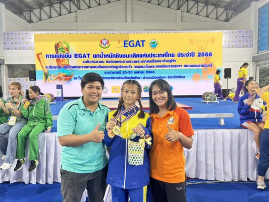 นางสมจิต บุญคงเสน ผู้อำนวยการโรงเรียนกีฬาจังหวัดอ่างทอง กล่าวแสดงความยินดีกับ แผนกกีฬายกน้ำหนัก โรงเรียนกีฬาจังหวัดอ่างทอง และ สโมสรยกน้ำหนักโรงเรียนกีฬาจังหวัดอ่างทอง ที่ส่งนักกีฬายกน้ำหนักเข้าร่วม การแข่งขันระดับยุวชน EGAT ยกน้ำหนักชิงชนะเลิศแห่งประเทศไทย ประจำปี 2566 ระดับยุวชน ชิงถ้วยพระราชทาน สมเด็จพระกนิษฐาธิราชเจ้า กรมสมเด็จพระเทพรัตนราชสุดาฯ สยามบรมราชกุมารี ระหว่างวันที่ 20-30 เมษายน 2566 ที่โรงยิมเนเซียมองค์การบริหารส่วนจังหวัดพังงา จังหวัดพังงา โดยเมื่อเริ่มการแข่งขันวันแรก ปรากฏว่านักกีฬาจากโรงเรียนกีฬาจังหวัดอ่างทอง เอ กวาด 3 เหรียญทอง 1 เหรียญเงิน 1 เหรียญทองแดง
