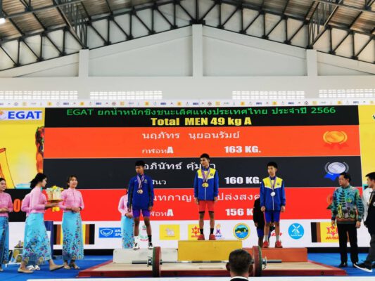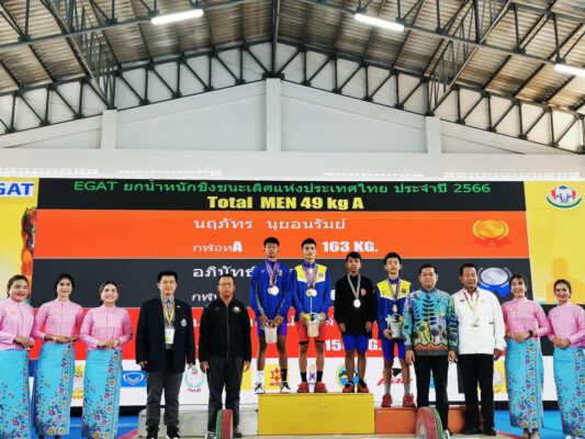 โดย ในรุ่น 49 กิโลกรัมชาย “นฤภัทร นุยอนรัมย์” โรงเรียนกีฬาจังหวัดอ่างทอง เอ คว้า 3 เหรียญทอง จากท่าสแนทช์ 71 กิโลกรัม ท่าคลีนแอนด์เจิร์ก 92 กิโลกรัม และน้ำหนักรวม 163 กิโลกรัม ส่วน “นนทกาญจน์ เปล่งสงคราม” จากโรงเรียนกีฬาจังหวัดอ่างทอง เอ ได้ 1 เหรียญเงิน ท่าสแนทช์ 70 กิโลกรัม 1 เหรียญทองแดง น้ำหนักรวม 156 กิโลกรัม ขณะที่ท่าคลีนแอนด์เจิร์ก ได้อันดับ 4 สถิติ 86 กิโลกรัม