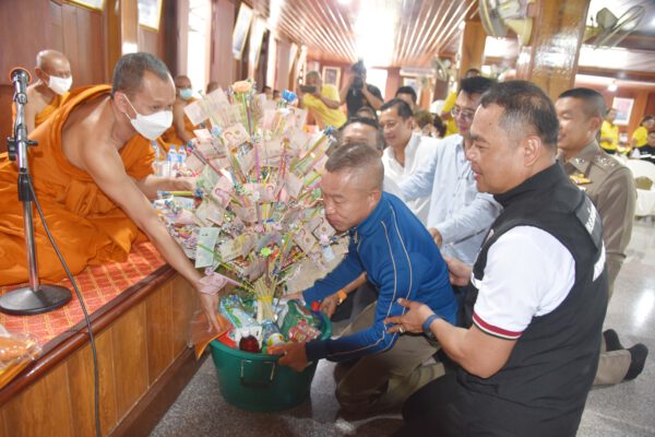 พระครูศรีรัตนาภิวัฒน์ ดร.รองเจ้าคณะจังหวัดสุพรรณบุรี เจ้าอาวาสวัดพระลอย ต.รั้วใหญ่ อ.เมือง จ.สุพรรณบุรี ประธานคณะกรรมการตรวจสอบและติดตามการบริหารงานตำรวจภูธรเมืองสุพรรณบุรี (กต.ตร.) เป็นประธานฝ่ายสงฆ์ นายภาสกร ภัทรวิกรัยกุล ประธานฝ่ายฆาราวาส พ.ต.อ.ธัชชัย ทิพเนตร ผกก.สภ.เมืองสุพรรณบุรี ประธานคณะกรรมการดำเนินการ พร้อมคณะกรรมการ กต.ตร.สภ.เมืองสุพรรณบุรี ร่วมกันทอดผ้าป่าสามัคคี เพื่อสมทบทุนสร้างห้องเก็บอาวุธปืนของทางราชการ และสร้างที่พักคอยสำหรับประชาชนที่มาติดต่อราชการ รวมทั้งปรับภูมิทัศน์ของ สภ.เมืองสุพรรณบุรี โดยมี พ.ต.อ.สมพร พุกหอม รอง ผบก.ภ.จว.สุพรรณบุรี พ.ต.ท.พีระพงษ์ จบศรี รอง ผกก.สส.สภ.เมืองสุพรรณบุรี พ.ต.ท.กวินท์ อดุลยาศักดิ์ รอง ผกก.จร.สภ.เมืองสุพรรณบุรี พ.ต.ต.สมชาย รอบคอบ สว.ธุรการ สภ.เมืองสุพรรณบุรี และข้าราชการตำรวจในสังกัด ร่วมพิธี ได้ยอดเงินทั้งสิ้น 788,859 บาท