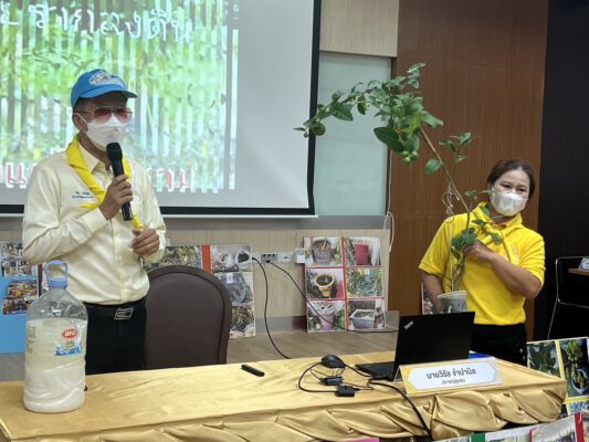 ต่อจากนั้น เป็นการบรรยายหัวข้อเรื่อง “การปลูกพืชในพื้นที่ขนาดเล็ก” โดย นายวิรัช จำปานิล หรือลุงอ๊อดเกษตรครัวเรือน ปราชญ์ชุมชน ประธานเครือข่ายสงเสริมการจัดการสิ่งแวดล้อมนครปฐม และประธานจิตอาสาพุทธมณฑล ผู้ยึดแนวคิดปรัชญาเศรษฐกิจพอเพียงของในหลวงรัชกาลที่ 9 ในการขับเคลื่อนศูนย์เรียนรู้เกษตรครัวเรือนเพื่อการคุ้มครองผู้บริโภค เป็นแบบอย่างของการทำเกษตรแบบพอเพียงตามศาสตร์พระราชา ได้ถ่ายทอดประสบการณ์จากการทุ่มเท คิดค้นนวัตกรรมเกษตรชุมชน เพื่อพัฒนาคุณภาพชีวิต จนมีผลงานปรากฏเป็นที่ประจักษ์มากมาย เช่น การปลูกพืช ผัก ผลไม้ในครัวเรือนด้วยวัสดุที่เหลือทิ้ง เช่น การปลูกพักสวนครัว ปลูกมะกรูด ในแก้วกาแฟและอื่นๆ อีกมากมาย และการออกแบบระบบการใช้ประโยชน์จากน้ำทิ้งทุกประเภทในครัวเรือนมาใช้เพื่อการเกษตร ได้แก่ น้ำล้างมือ น้ำล้างจาน น้ำจากแอร์ น้ำซักผ้า น้ำอาบ เป็นต้น โดยการต่อท่อ PVC ที่ออกแบบไว้รองรับน้ำทิ้งให้ไหลตามท่อออกมารดโคนต้นไม้ที่ปลูกไว้ภายในบริเวณบ้านได้โดยตรง หรือให้น้ำทิ้งผ่านถังพักที่เติมปุ๋ยชีวภาพแล้วค่อยปล่อยลงท่อสู่โคนพืช ผัก ต้นไม้ ทำให้ต้นไม้เจริญเติบโต งอกงามออกดอก–ผล สามารถเก็บมาบริโภคได้ อีกทั้งแบ่งปันสู่ชุมชนอีกด้วย รวมถึงการทำดินด้วยวัตถุดิบตามธรรมชาติ เช่น ใบไม้ เปลือกผลไม้ทุกชนิด เพื่อลดการเผาไหม้ และลดมลพิษทางอากาศ ทั้งนี้ การบรรยายดังกล่าวได้รับความสนใจและเป็นประโยชน์จากกลุ่มจิตอาสาและผู้เข้าร่วมฟังการบรรยาย ในการนำแนวคิดไปต่อยอดและปฏิบัติเองได้
