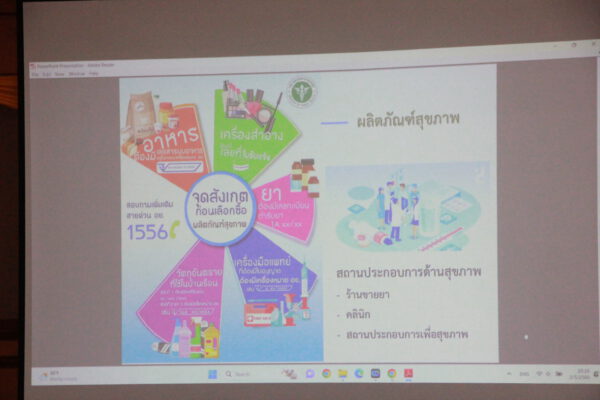 นางจารุรัตน์ พัฒน์ทอง รองนายแพทย์ สสจ.ประจวบฯ กล่าวว่า งานด้านการคุ้มครองผู้บริโภค เป็นภารกิจในการส่งเสริม ป้องกันโรค การบริโภคที่ดีก็จะลดปัญหาสุขภาพได้ โดยเฉพาะผลิตภัณฑ์ด้านสุขภาพ เช่น อาหาร ยา เครื่องสำอาง ยังเป็นผลิตภัณฑ์ที่ต้องมีการกำกับดูแล จากสถานการณ์ขณะนี้ก็มีปรากฎให้เห็นว่า มีปัญหาในการควบคุมให้มีคุณภาพ มาตรฐาน รวมถึงการโฆษณาสรรพคุณที่เกินจริง การสร้างระบบเครือข่ายในการดำเนินงานในพื้นที่ เป็นสิ่งที่จะทำให้เกิดระบบเฝ้าระวังที่มีประสิทธิภาพมากขึ้น หน่วยงานภาคประชาชนเป็นภาคีเครือข่ายที่สำคัญ ในระบบสาธารณสุข ที่เห็นได้ชัดคือ อาสาสมัครสาธารณสุขประจำหมู่บ้าน หรือ อสม. ที่มีบทบาทในงานด้านสาธารณสุข คัดกรองอาการโรคต่างๆให้ประชาชนในหมู่บ้าน รวมถึงให้ความรู้ที่ถูกต้องในการดูแลสุขภาพ สิ่งแวดล้อม และสุขภาวะในชุมชน ดังนั้นหากมีเครือข่ายภาคประชาชนด้านการการคุ้มครองผู้บริโภค ก็ถือเป็นการพัฒนางานคุ้มครองผู้บริโภคให้มีประสิทธิภาพมากขึ้น โดยการจะไปถึงเป้าหมายนั้นได้ ต้องมีการกำหนดบทบาทหน้าที่ กำหนดประเด็นในการขับเคลื่อนร่วมกัน การสร้างกลไกในการเฝ้าระวังผลิตภัณฑ์หรือบริการด้านสุขภาพ