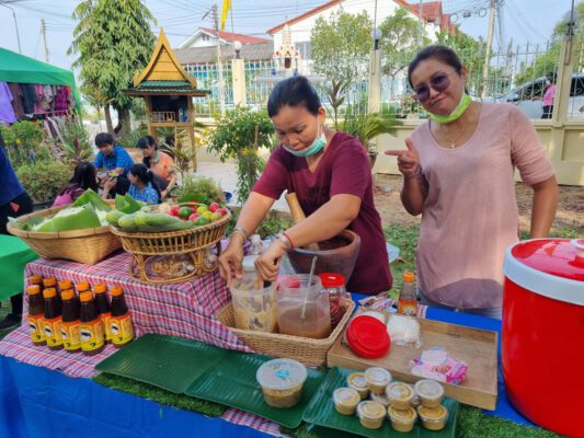 ในขณะเดียวกันช่วยให้พี่น้องประชาชนได้มีโอกาสเลือกซื้อผลผลิตทางการเกษตรที่สะอาด ปลอดภัย ได้คุณภาพ ราคาถูก จากมือผู้ปลูกโดยตรง อาทิ ข้าว (หอมมะลิ, กข 43, ไรซ์เบอร์รี่) ผักสลัด ผักพื้นบ้าน ผลไม้ตามฤดูกาล นอกจากนี้ยังมีผลผลิตด้านปศุสัตว์ เช่น ไข่สดจากฟาร์ม นมวัว นมแพะ ตลอดจน สินค้าประมง Fisher man shop ร่วมด้วยอาหารและเครื่องดื่ม ผลิตภัณฑ์แปรรูป กระเป๋าจักสาน เป็นต้น