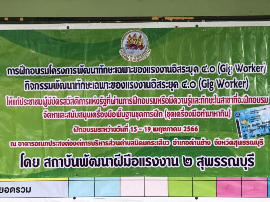 วันนี้(15 พ.ค.66) สถาบันพัฒนาฝีมือแรงงาน 2 สุพรรณบุรี บูรณาการร่วมกับองค์การบริหารส่วนตำบลนิคมกระเสียว ดำเนินการเปิดฝึกอบรมอาชีพแก่ผู้มีบัตรสวัสดิการแห่งรัฐ
