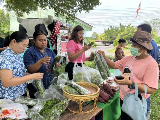 ทั้งนี้ นอกจากจะเป็นการเพิ่มช่องทางการจำหน่ายผลผลิตทางการเกษตรให้แก่เกษตรกรในพื้นที่ ในขณะเดียวกันช่วยให้พี่น้องประชาชนได้มีโอกาสเลือกซื้อผลผลิตทางการเกษตรที่สะอาด ปลอดภัย ได้คุณภาพ ราคาถูก จากมือผู้ปลูกโดยตรง อาทิ ข้าว (หอมมะลิ, กข 43, ไรซ์เบอร์รี่) ผักสลัด ผักพื้นบ้าน ผลไม้ตามฤดูกาล นอกจากนี้ยังมีผลผลิตด้านปศุสัตว์ เช่น ไข่สดจากฟาร์ม นมวัว นมแพะ ตลอดจน สินค้าประมง Fisher man shop ร่วมด้วยอาหารและเครื่องดื่ม ผลิตภัณฑ์แปรรูป กระเป๋าจักสาน เป็นต้น