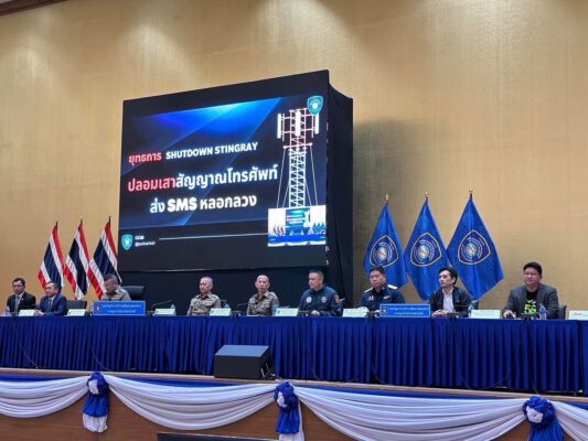 “อย่างไรก็ตาม อย่างที่ทราบกันว่า มิจฉาชีพเองก็มี การพลิกแพลงรูปแบบการละเมิดเพิ่มเติมขึ้น อย่างกรณี การส่ง SMS จากเครือข่ายปลอมด้วยอุปกรณ์ผิดกฎหมายไปยังมือถือประชาชน ที่เรียกว่า False Base Station (FBS) หรือ Fake Base Station โดยใช้ชื่อผู้ส่ง (Sender name) ปลอมแปลงในนามขององค์กรต่างๆ อาทิ ธนาคาร, บริการประเภทต่างๆ เพื่อหลอกให้ประชาชนที่ได้รับข้อความหลงเชื่อว่าเป็น SMS จากหน่วยงานนั้นๆจริง และล่อลวงให้กดลิงก์, แอดไลน์ และอื่นๆ จนก่อให้เกิดความเสียหาย ทั้งทรัพย์สิน หรือ ข้อมูลส่วนบุคคล ซึ่ง AIS ในฐานะผู้ให้บริการเครือข่าย ได้ตรวจสอบพบความผิดปกติ และทีมวิศวกร ได้ร่วมทำงานกับฝ่ายความมั่นคงอย่างเต็มกำลังมาแล้วระยะหนึ่ง ในการเฝ้าดูและติดตามพฤติกรรมของมิจฉาชีพตลอด 24 ชั่วโมง ผ่านเทคโนโลยี Tracking& Monitoring จนสามารถคำนวณเส้นทางการเคลื่อนตัวอย่างละเอียดเพื่อค้นหาให้ถึงตัวแหล่งกบดานของกลุ่มนี้ และเป็นส่วนหนึ่งที่ทำให้ภารกิจการทลายแก๊งมิจฉาชีพกลุ่มนี้สำเร็จลงได้”