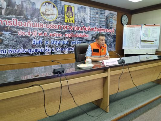วันนี้(1 มิ.ย.66) เวลา 09.00 น.ที่ห้องประชุมขุนแผน ชั้น ๔ ศาลากลางจังหวัดสุพรรณบุรี นายปริญญา เขมะชิต รองผู้ว่าราชการจังหวัดสุพรรณบุรี กล่าวขณะเป็นประธานเปิดโครงการ ฝึกการป้องกันและบรรเทาสาธารณภัยจังหวัดสุพรรณบุรี ประจำปี พ.ศ. ๒๕๖๖ : กรณีแผ่นดินไหวว่า