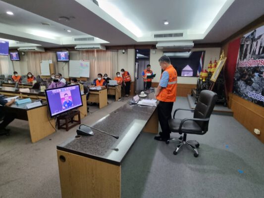 จึงได้จัดทำโครงการดังกล่าวโดยใช้รูปแบบการฝึกซ้อมบนโต๊ะ( Table Top Exercise : TTX ) เพื่อจัดทำแผนเผชิญเหตุแผ่นดินไหวในแต่ละระดับให้สอดคล้องกับการจัดทำคู่มือบัญชาการเหตุการณ์สำหรับผู้ว่าราชการจังหวัดกรณีแผ่นดินไหว และนำแผนการป้องกันและบรรเทาสาธารณภัยแห่งชาติ พ.ศ.๒๕๖๔-๒๕๗๐ ไปสู่การปฏิบัติกรณีแผ่นดินไหวทุกระดับและเพื่อทดสอบประสิทธิภาพการปฏิบัติงานของเจ้าหน้าที่ตามแผนเผชิญเหตุแผ่นดินไหวแต่ละระดับ อาทิ ระบบการบัญชาการเหตุการณ์ระบบสื่อสาร การอพยพประชาชนไปยังจุดปลอดภัย การจัดการทรัพยากรการเผชิญเหตุ และการจัดการศูนย์พักพิงในพื้นที่ ให้เกิดการ บูรณาการการทำงานร่วมกันกับทุกภาคส่วนที่เกี่ยวข้อง และการฝึกปฏิบัติบุคลากรในระดับจังหวัด อำเภอ และท้องถิ่นให้มีศักยภาพด้านการป้องกันและบรรเทาสาธารณภัยจากแผ่นดินไหว รวมทั้งสร้างความตระหนัก และเตรียมความพร้อมภาคประชาชนในการรับมือกับเหตุการณ์แผ่นดินไหว โดยมีหน่วยงานที่เกี่ยวข้องในระดับจังหวัด ระดับอำเภอ ๑0 อำเภอ และหน่วยงานระดับท้องถิ่น เข้าร่วมการฝึกฯ รวมทั้งสิ้น ๗๐ คน พร้อมกันนี้ยังฝึกผ่านระบบซูมกับหน่วยงานที่เกี่ยวข้อง จากทั้ง 10 อำเภอ ด้วย