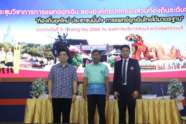 นายพิเชษฐ์ หนองช้าง รองเลขาธิการ สถาบันการแพทย์ฉุกเฉินแห่งชาติ นายบุญชู จันทร์สุวรรณ นายกองค์การบริหารส่วนจังหวัดสุพรรณบุรี และนายรัฐพล เวชสรณสุธี นายแพทย์สาธารณสุขจังหวัดสุพรรณบุรี ร่วมกันแถลงข่าวการประชุมวิชาการการแพทย์ฉุกเฉินขององค์กรปกครองส่วนท้องถิ่น ระดับชาติ ครั้งที่ 7 ภายใต้แนวคิด “ท้องถิ่นยุคใหม่ ประชาชนมั่นใจ การแพทย์ฉุกเฉินไทยได้มาตรฐาน” ระหว่างวันที่ 5-7 กรกฎาคม 2566 ณ องค์การบริหารส่วนจังหวัดสุพรรณบุรี โดยมีกลุ่มเป้าหมาย ได้แก่ ผู้บริหาร ผู้ปฏิบัติการ คณะกรรมการ และคณะอนุกรรมการในระบบการแพทย์ฉุกเฉิน นักวิชาการ และบุคลากร อปท. ทั่วประเทศ รวมจำนวน 2,000 คน เพื่อแลกเปลี่ยนเรียนรู้ นวัตกรรมใหม่ๆ ด้านการแพทย์ฉุกเฉิน พัฒนาระบบบริหารจัดการการแพทย์ฉุกเฉิน และเครือข่ายผู้ปฏิบัติงาน เพื่อเพิ่มประสิทธิภาพการช่วยเหลือชีวิตพี่น้องประชาชนให้ทันท่วงทีและดียิ่งขึ้น