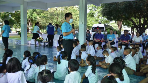 โดย นายณัฐภัทร สุวรรณประทีป ผู้ว่าราชการจังหวัดสุพรรณบุรี พร้อมด้วย นางนภัสสร สุวรรณประทีป ประธานแม่บ้านมหาดไทยจังหวัดสุพรรณบุรี ส่วนราชการ องค์กรปกครองส่วนท้องถิ่น กำนัน ผู้ใหญ่บ้าน ร่วมร้องเพลงชาติและสวดมนต์กับเด็กนักเรียน จากนั้นผู้ว่าราชการจังหวัดสุพรรณบุรีได้ให้โอวาท ขอให้นักเรียนทุกคนเห็นถึงความสำคัญของสถาบันหลัก ประกอบด้วย ชาติ ศาสนา พระมหากษัตริย์ ขอให้ถือปฏิบัติศีล 5 ไม่ยุ่งเกี่ยวกับยาเสพติด และขอให้เด็ก ๆ ยกนิ้วสัญญา 2 ข้อ คือ ทำให้พ่อแม่มีความสุข และไม่ยุ่งเกี่ยวกับยาเสพติด โครงการเยาวชนคนดีศรีสุพรรณ พร้อมวินัยจราจร หากเด็กๆ ไปไหนมาไหน ซ้อนมอเตอร์ไซค์ ขอให้สวมหมวกกันน็อคด้วย โดยมีกิจกรรมให้เด็ก ๆ ได้ร่วมกันตอบคำถาม พร้อมแจกของรางวัลต่าง ๆ มากมาย