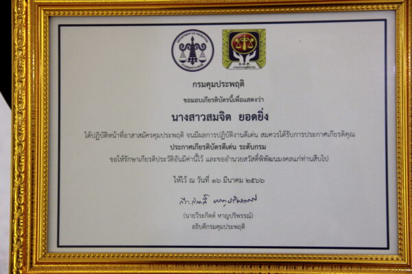 นายกิติพงศ์ สุขภาคกุล รองผู้ว่าฯ กล่าวแสดงความยินดีกับ อาสาสมัครคุมประพฤติฯ ที่ได้รับประกาศเกียรติคุณ เชิดชูเกียรติอาสาสมัครคุมประพฤติดีเด่น ระดับกรมคุมประพฤติ โดยการประกาศเกียรติคุณ ประกาศเกียรติบัตรดีเด่น ให้กับอาสาสมัครคุมประพฤติเป็นประจำทุกปี เพื่อเป็นการส่งเสริมและสร้างขวัญกำลังใจในการปฏิบัติหน้าที่ของอาสาสมัครคุมประพฤติ นั้นแสดงให้เห็นถึงการเข้ามามีส่วนร่วมของภาคประชาชน ที่เข้ามามีส่วนร่วมในการปรับเปลี่ยนแก้ไข และช่วยกันสอดส่อง ดูแล ผู้กระทำผิดในชุมชน เพื่อให้สามารถกลับตัวเป็นพลเมืองดีและสามารถอยู่ร่วมกับผู้อื่นในชุมชนได้อย่างปกติสุข แสดงให้เห็นถึงการ มีศักยภาพของบุคลากรและหน่วยงาน และเป็นการสร้างภาพลักษณ์ที่ดีให้กับจังหวัดประจวบคีรีขันธ์