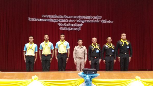 ที่หอประชุมอาชาสีหมอก ศาลากลางจังหวัดสุพรรณบุรี นายนิมิต วันไชยธนวงศ์ ผู้ว่าราชการจังหวัดสุพรรณบุรี เป็นประธานในพิธีเปิดโครงการจิตอาสาพระราชทานตามแนวพระราชดำริ “หลักสูตรหลักประจำ” รุ่นที่ 1/61 “เป็นเบ้า เป็นแม่พิมพ์” และร่วมรับฟังการบรรยายจากวิทยากรจิตอาสา 904 โดยมีหัวหน้าส่วนราชการ ข้าราชการ ผู้นำชุมชน และประชาชนจิตอาสาจากทั้งสิบอำเภอ รวมกว่า 500 คนเข้าร่วมอบรมเรื่องสถาบันพระมหากษัตริย์กับประเทศไทย
